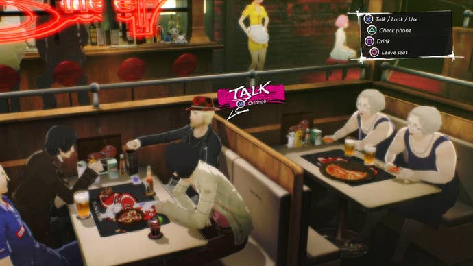 The story's choice-based progression evolves in the same way as the original: in the decisions you make while hanging out at the Stray Sheep bar. There you talk to its customers and learn about their own issues, catch up with your friends, drink, play the in-game puzzle arcade cabinet Rapunzel, and even talk to Rin, who Erica and the Boss of the bar have taken in as an employee. Vincent texts Katherine, Catherine, and Rin during these segments, swapping photos and choosing text messages very carefully. The Stray Sheep has a nifty jukebox too, where you can play a number of tracks from Catherine, Persona 5, Persona 4, and more's respective soundtracks. (You bet your ass I had Persona 3's "Burn My Dread" playing on loop.)