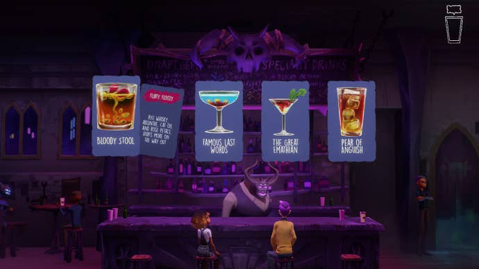 Afterparty's selling point might be "flirting with Satan" (the developer's words, not mine), but you shouldn't overlook the journey to get to the big showdown. There's plenty to adore about hell in Night School Studios' small adventure, from the demonic denizens that lurk in bars and shadowy sidewalks, to the hell-themed cocktails and subtly poignant conversations, all adorned with razor-sharp wit and writing.